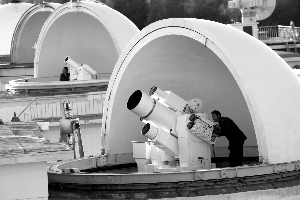 基地战士用光测设备精确测量划过高空的导弹痕迹。谭超 摄