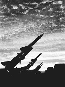 突然,霹雳震天,地平线上猛地蹿起一条条“火龙”,拖着银白的烟柱直刺苍穹。转眼,“火龙”变作一颗颗炽热的流星,怒吼着、呼啸着,把一架架行踪诡秘的“敌”机打得粉身碎骨……