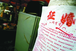 11月23日,北川擂鼓镇,征婚启事随处可见。 记者 王申