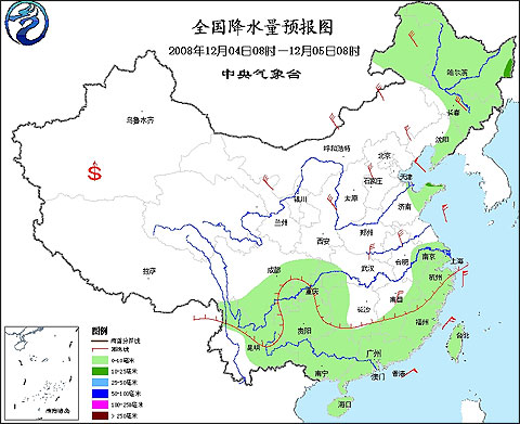 2008年12月4日8时—12月5日8时全国降水量预报图