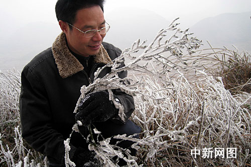 昨日下午,待记者赶到乳源大桥镇时,漫天飘雪已经停止,但是从风口中灌出的刺骨寒风依然有如刀割一般。站在山中路旁,寒风凛冽中极目四望,漫山遍野的雪松冰挂交相辉映,偶尔在草丛中发现已被冰雪包裹的几颗红彤彤的野果,在一片洁白世界的映衬下娇艳欲滴;而盛开的山茶花一夜间被凝冻成冰,更觉晶莹剔透。整座山峰呈现出一片银枝玉叶、冰挂雾凇的奇美景象,仿佛走进了神奇的冰雪童话世界!对于难得见到冰雪的广东人而言,无疑是游客观赏的一道靓丽风景。