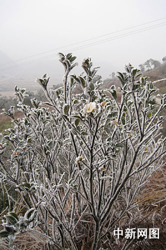 盛开的山茶花凝冻成冰。作 者:冯昶 李凌 赖南坡