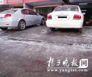 南京一停车场冰冻有10厘米厚。黄南 摄