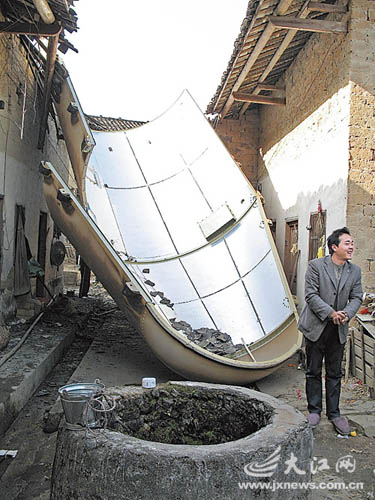 12月23日9时15分左右,当天上午发射的“风云二号”06星整流罩的一半掉落在我省(江西)龙南县九连山古坑村,该县人武部已将该部分残骸成功收回(见图)。