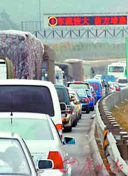 前天下午,京珠高速湖南宜章段因收费忙而出现长达7公里的堵塞车龙,在永兴段又因为事故而堵车长达7公里左右。湖南省政府于当天下午3时50分开始一直到当天深夜连续5次在京珠高速小塘站对所有堵塞车辆实施间断免费放行措施,致使京珠北南行即湖南往广东方向瞬间车流量激增。