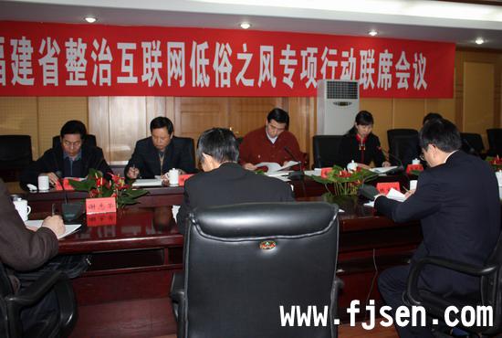 省整治互联网低俗之风专项行动协调小组成员单位和省文明办、省电信公司、省移动公司、省联通公司负责人参加了会议。(福建日报记者 周琳)