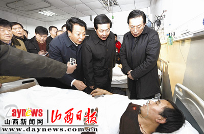张宝顺、王君指出,一定要按照党中央、国务院领导的指示,全力以赴做好井下抢险工作,要对井下每一个采区、每一个工作面、每一个硐室全部搜救,不留死角;要制定科学详细的计划,尽快恢复井下临时通风系统;要准备好所有的生产和管理的真实资料,为事故调查做好准备。张宝顺、王君特别强调,要做好升井矿工的救治工作,凡是升井人员,要逐一登记,实施24小时医学观察,防止发生一氧化碳中毒后遗症,对重症伤员要不惜一切代价全力抢救;要立即启动事故善后工作,以人为本,稳定人心,稳定矿区;全省上下要举一反三,吸取事故教训,抓紧落实省安全生产会议制定的各项措施,一定要按照党中央、国务院的指示,把事故损失降到最小。