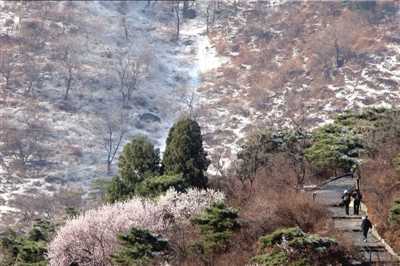 昨天早上,香山大半个山体均铺上了一层薄薄的积雪,从远处望去,就像白色的丝绸一样,空气也特别清新。香山管理处表示,往年3月下旬很少出现这么大面积的雪。