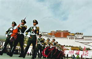 2001年7月29日晚,一声巨响,布达拉宫白宫顶部一座五彩宝幢突遭雷击。官兵们闻声立即赶到现场,冒着生命危险,在雷雨交加中用塑料薄膜把残损的宝幢包严实。为防止再发生意外,官兵们雨夜坚守了6个多小时。