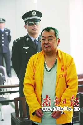 昨天下午,来自全国各地的记者又把法庭围得水泄不通。这一幕,和2006年12月的庭审时一样。不同的是,当时法庭内的顾雏军,理直气壮,拿着几十页的辩护词演讲似的自辩,否认所有的控罪。而这一刻的顾雏军,静静地听着法官宣读108页的判决书,神情自然,没有言语(如图,刘晓哲摄)。当审判长敲下法槌宣布“驳回上诉,维持原判”时,穿着黄色囚服的顾雏军皱了一下眉头。似乎这一切,他早有心理准备。