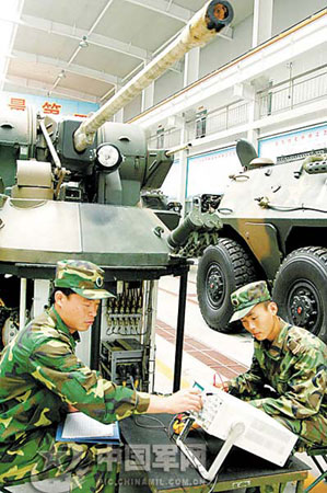 战车上,战士们正在细心地检查每一部件,特别是对装甲战车的油路、电路和发动机等关键部位进行反复调试。旁边的一块小黑板上,贴着一张记录每台战车性能指标和保养重点的表格。战士白胜告诉记者:“别看是所有战车同时保养,要是哪台车没能达到保养规定要求,摄影头会立即把信息反馈给保养综合信息平台。”