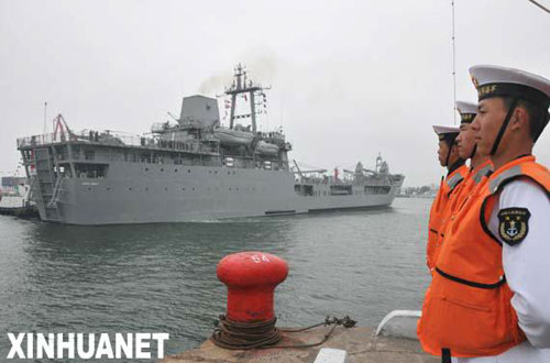 巨大的银灰色舰身像一座大山一样向青岛港码头压来,舰载直升机、雷达、火炮等武器装备列阵舰艇之上……