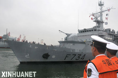 在应邀前来参加海上检阅活动的21艘外国舰艇中,法国海军“葡月”号导弹护卫舰是来访中国次数最多的。它曾先后7次访问中国,2002年还对青岛进行过友好访问。
