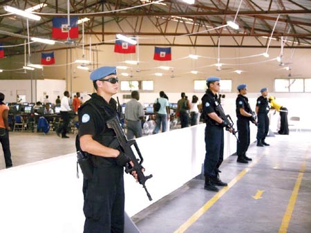 中新网4月27日电 据公安部网站消息,在联合国驻海地稳定特派团和海地政府的共同努力下,海地大选第一轮议会选举如期顺利举行。中国第七支驻海地维和警察防暴队承担了最重要的全国选举计票中心安全保卫任务和选票押运工作。