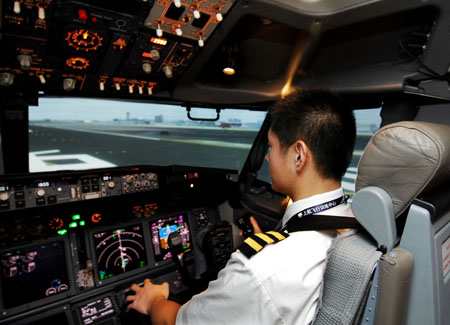 我们的训练都是在模拟机上完成的。主要是针对起飞时一台发动机失效、着火及飞脱,空中的部分操纵系统故障,高空的发动机故障,座舱急剧释压,着陆时部分起落架不能放下等。比如遇上湍流,飞行员首先会把飞机速度降低到穿越颠簸区域的速度,将发动机的“点火开关”扳到“连续点火”,防止发动机熄火。有时还需要断开“自动驾驶仪”人工飞行。