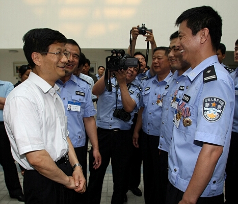 中新网6月16日电 据公安部网站消息,天津市公安英模先进事迹报告会6月16日在津举行。中共中央政治局委员、天津市委书记张高丽,国务委员、公安部党委书记、部长孟建柱会见天津公安英模代表和报告团成员并出席报告会。
