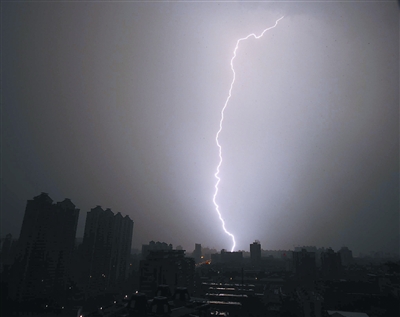 武汉遇今年最强雷暴 2小时对地强闪2173次(图)