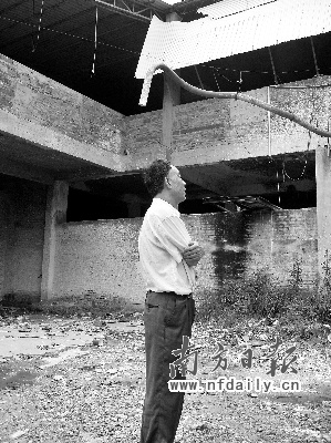 废弃十多年的电梯生产厂房已荒草丛生,面对此情此景,陈锦洪无限凄凉。杨大正摄