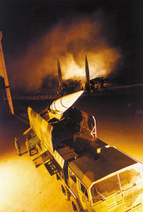动真格的了!马小江掏出指北针,指挥部队开进。当他带领部队到达阵地时,距规定时间只剩下几分钟。这一路,他们途经3个塌方险要地段,遭遇一次空袭警报,两次躲避侦察卫星临空……他们的代价是:1辆发射车在躲避卫星侦察时因伪装不善被“敌”发现,被判“摧毁”。