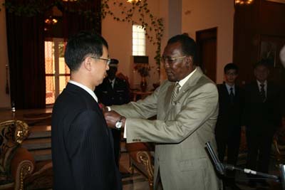 中新网7月5日电 据外交部网站消息,7月4日,乍得总统代比在即将离任的中国驻乍大使王英武辞行拜会时,以乍得共和国的名义,向王大使授予乍国家级“军官”荣誉勋章,并与王大使进行了友好交谈。