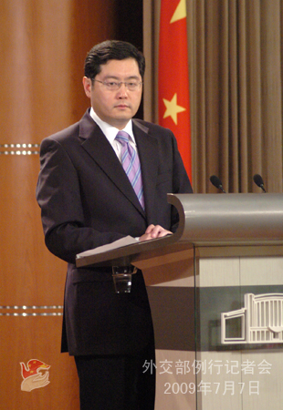中新网7月7日电 据中国外交部网站消息,2009年7月7日,外交部发言人秦刚举行例行记者会。答问如下:
