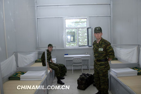 入住后俄方官兵很快感受到了野战条件下的现代化军营生活。他们在宽敞明亮军官板房和帐篷营房整理好行旅后,有的来到光洁干净的洗漱台擦洗一身的风尘,有的到设在营区内的中国工商银行兑换货币,有的在军营话吧向家人报平安,有的在军营网吧发邮件、看新闻,有的到军营超市购买生活用品。当晚,中方还为俄方官兵提供了丰盛的晚餐。热情友好的中国军人,规模庞大气派、设施设备先进、功能配套齐全的野营村,给俄方官兵留下了很好的第一印象,俄方官兵左一句“哈拉寿”、右一句“哈拉寿”地赞不绝口。(郭良生 上官明)