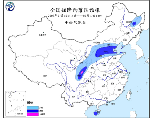 中新网7月16日电 据中国气象局网站消息,中央气象台16日发布暴雨橙色警报:预计,今天下午到明天中午,四川盆地西部、甘肃东南部、陕西西南部和东北部、山西中北部、河北中部、北京南部、天津、辽东半岛南部、山东东北部以及黑龙江中部、海南西部等地的部分地区有暴雨,其中,四川盆地西北部局部地区有大暴雨。上述部分地区并伴有短时雷雨大风等强对流天气。