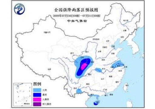 中新网7月30日电 中央气象台30日06时发布暴雨预报:预计,今天白天到夜间, 青海东南部、甘肃中南部、四川中东部、陕西南部、湖北西部、江苏中南部、安徽东南部、云南东南部、广西西南部、广东西南部、海南大部等地有大雨,其中甘肃南部、陕西西南部、四川盆地西部和北部、海南南部等地的部分地区有暴雨,局部地区有大暴雨。