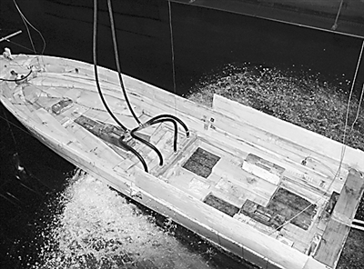 在某研究所建成的亚洲最大船模水池我们看到,刚刚还如平镜的水面,随着造波机启动,一时浪花涌动,自航试验艇起步加速,转瞬间艇艏昂起,艇后划出一道白色的航迹,飞一般地冲到水池另一端。