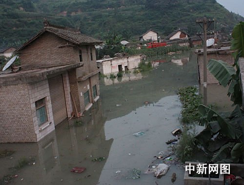 山体突发大面积滑移造成当地部分场镇进水,房屋泡在水中。 中新网发 刘勇 摄