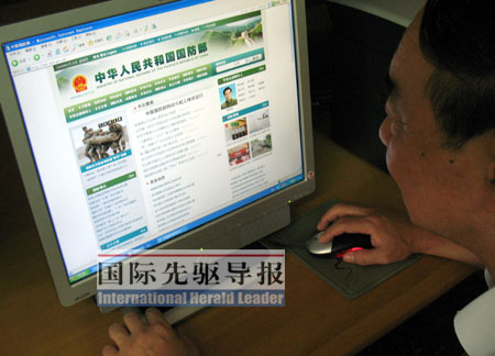 《国际先驱导报》记者金微发自北京 一间大办公室里,几十台电脑依次排开,办公桌前不时传来键盘敲击声。走进国防部网站办公地点时,这些熟悉的办公场景让人觉得这里并没有多少神秘。稍有不同的是,这里的工作人员大都穿着整齐的军装,这提醒着人们这家刚刚开通的网站的严肃与特殊。