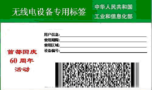 第五条 进入特殊控制区域使用的无线电台(站)和无线电发射设备,应当由工业和信息化部无线电管理局或者北京市无线电管理局进行核验,粘贴“首都国庆60周年活动无线电设备专用标签”(具体样式见附件,以下简称专用标签),并在专用标签上注明的时间、区域内使用。