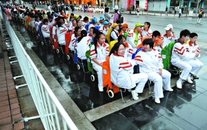 来自北京工业大学的小丁说,他们所在的是群众游行方阵,已连续训练了15天,每天训练近6个小时。据他介绍,正式演练要等到7日凌晨1点开始,到达演练区域后,“虽需等待几个小时,但不感觉累,能参与国庆庆典,感觉十分荣幸。”