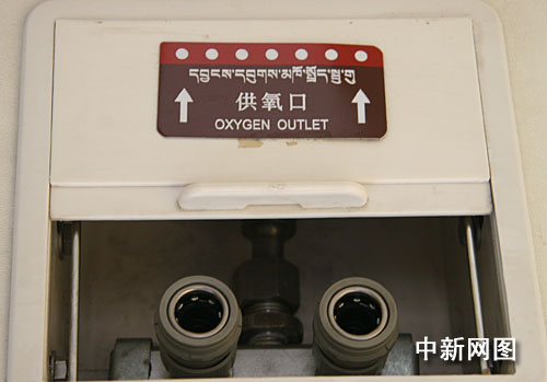 青藏铁路线上的列车和普通列车最大的区别之一就在这里——进入高原地区将会供氧。列车里几乎所有的标识都是汉语、藏语、英文三种语言。