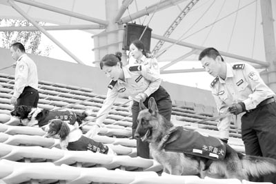 来自北京、天津、内蒙古等11个省市及解放军北京军犬基地的近200条国庆安保警犬,近日亮相北京警察训练总队,进行国庆安保集体誓师。据了解,这些警犬目前正在警察训练总队进行专业技术强化训练,在国庆安保工作中,这支警犬技术队伍将承担搜爆、安检以及刑事案件、突发事件现场处置等多项工作。