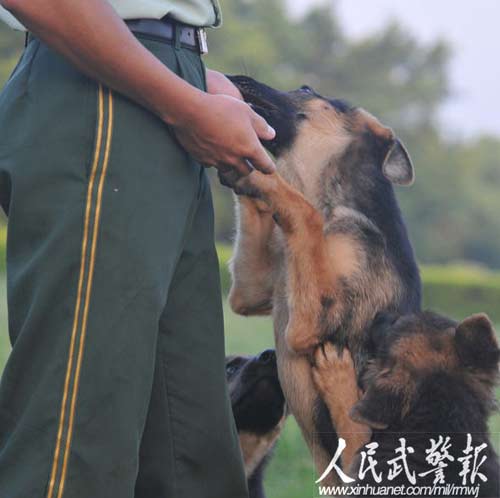"只有让犬觉得你就是它的亲人,它才会对你忠心耿耿。"有着12年兵龄的警犬基地训练队二班长农海底的话可谓是经验之谈。