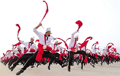 刘国超:安塞腰鼓特别值得期待。1000多名来自陕西的农民,白衣红鼓,在经过天安门广场时跳跃着打响欢鼓。这么大的规模,这么长的距离,边行进边打腰鼓是一个很大的创新。这个节目的意义也很深远,一方面我们不应该忘记历史上农民为中国革命作出的贡献,另一方面也体现了当代社会主义新农村中农民崭新的精神风貌。