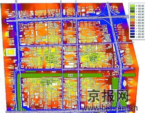 “这是北京市绘制的首张区域噪声地图”,据承担此项科研课题的北京市科研院下属市劳保所高级工程师户文成介绍,噪声地图技术是本世纪初才在欧洲迅速发展的一项新型的城市噪声预测方法,利用现代计算机技术和GIS技术,将噪声源的相关地理信息综合、分析和计算后生成的数据地图,反映出区域内的城市噪声水平。