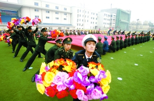 昨日,国庆联欢晚会中唯一的军民方队在地坛体育场进行最后一次彩排。