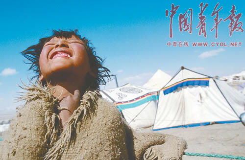 2002年,西藏阿里转山开心的孩子。 记者 李建泉摄