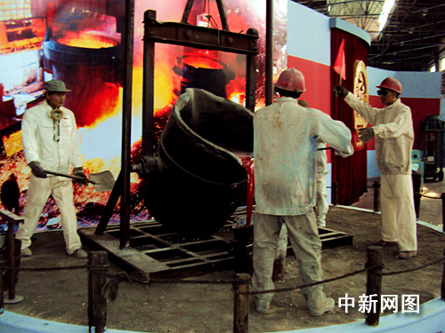 记者9月30日前往沈阳市铁西区铸造博物馆采访,那里不仅有第一枚国徽的模型,还有一组蜡像,形象生动地再现了当年铸造工人制作第一枚国徽时的情景。
