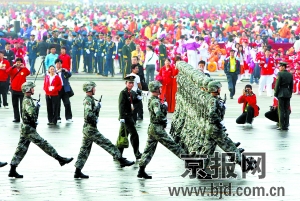 今天的国庆盛典精彩纷呈 ,高潮迭起,电视机前观看直播的读者一定大饱眼福。其实,盛典中的精彩瞬间还多着呢,有很多是您用肉眼看不到的。本报记者在这里特地为您揭秘一些镜头后的细节,感人的故事。