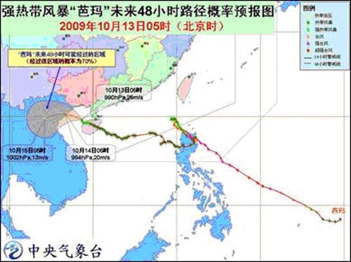 预计,“芭玛”将以每小时10公里左右的速度向西偏北方向移动,逐渐向越南北部沿海靠近,强度变化不大,并将于13日夜间到14日上午在越南北部沿海登陆。