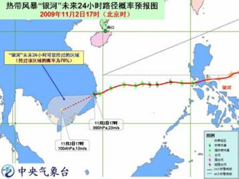 中新网11月2日电 中央气象台2日18时发布台风预报:今年第21号强热带风暴“银河”的中心已于2日16时前后在越南富安省(PhuYen)与庆和省(KhanhHoa)交界附近沿海登陆,登陆时中心附近最大风力有10级(25米/秒),中心最低气压为985百帕。登陆后,“银河”减弱为热带风暴,17时其中心位于越南庆和省境内,就是北纬12.8度、东经109.1度,中心附近最大风力有9级(23米/秒),中心最低气压为990百帕。