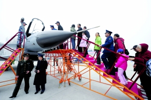 在歼-10展示区,工作人员专门设置了攀登梯,参观人员可以通过攀登梯走到机舱前,观看到驾驶室内的所有设备。而在世界一流的空警2000预警机区域,工作人员设立了一个约100米的隔离区域,参观人员只能在隔离区域外远观。