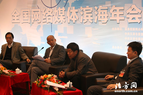 在昨天上午举行的网络媒体滨海论坛中,人民网、中国网、央视网、中国日报网以及中国经济网、中国新闻网等网络媒体的老总被请上主席台,与嘉宾主持人袁岳一同就如何通过网络进行更好的宣传、互联网未来发展以及如何利用网络促进滨海新区文化产业发展等议题进行了讨论。