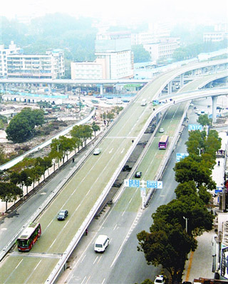 去年12月,光谷至街道口的直行高架先通车,保证了武珞路车辆的疏散。