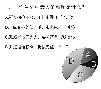 本报“基层之路怎样越走越宽”系列报道引起广大读者特别是基层干部的极大关注。《人民论坛》杂志和人民日报政治新闻版近日联合对105位基层领导干部和共产党员展开问卷调查,探求他们如何看待师延林和自己的幸福观。结果显示,让优秀干部安心扎根基层,能有大作为成为最大期盼。
