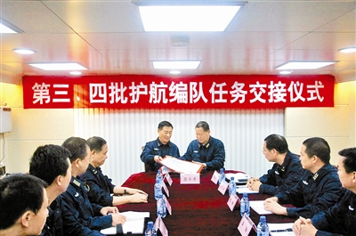 第三批护航编队指挥员王志国少将说,海军第三批护航编队自今年8月1日接替第二批护航编队执行护航任务以来,全体官兵发扬不怕艰苦、连续作战的精神,圆满完成了任务。他祝愿第四批护航编队的战友们再创佳绩。海军第四批护航编队指挥员邱延鹏表示,第四批护航编队将积极学习借鉴前三批护航编队的好传统好经验,努力完成好护航任务,不负党和人民的重托。(记者朱达、徐叶青)
