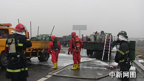 中新网苏州十二月十一日电 (苏消 罗垠林 朱晓颖)10日中午13时54分,苏州市消防支队浒关中队接到指挥中心接警称:沪宁高速无锡往苏州方向在东桥入口处,一辆载有15桶二硫化碳的货车因交通事故而引发火灾,继而导致爆炸。接警后,浒关中队立即出动前往救援,并通知交警部门配合对相关路段实施封闭。